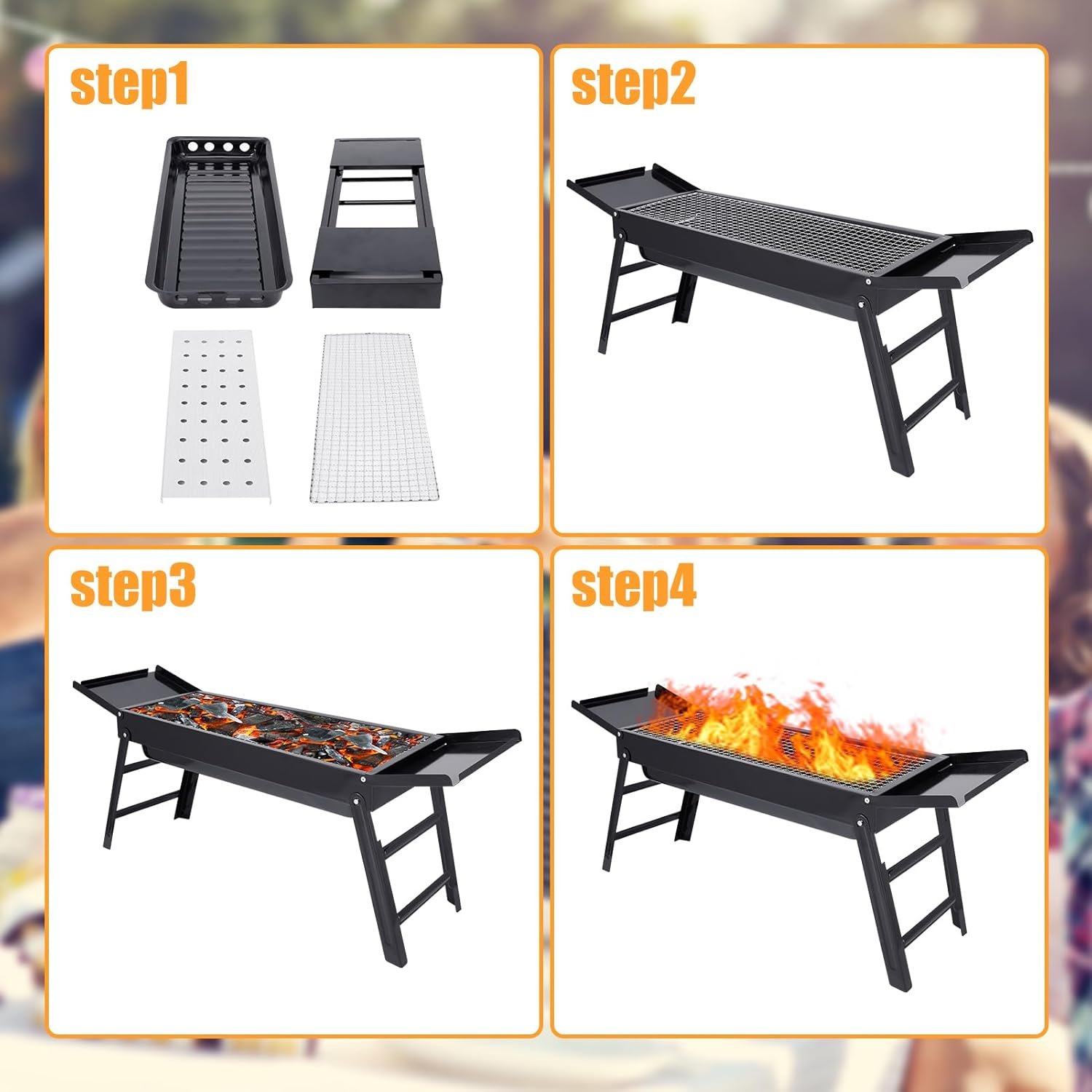 Charcoal grill foldable Outdoor smokeless foldable barbecue grill Portable grill Camping grill Cold rolled steel Suitable for 3-5 people With portable package 32×9×13in(L×W×H)