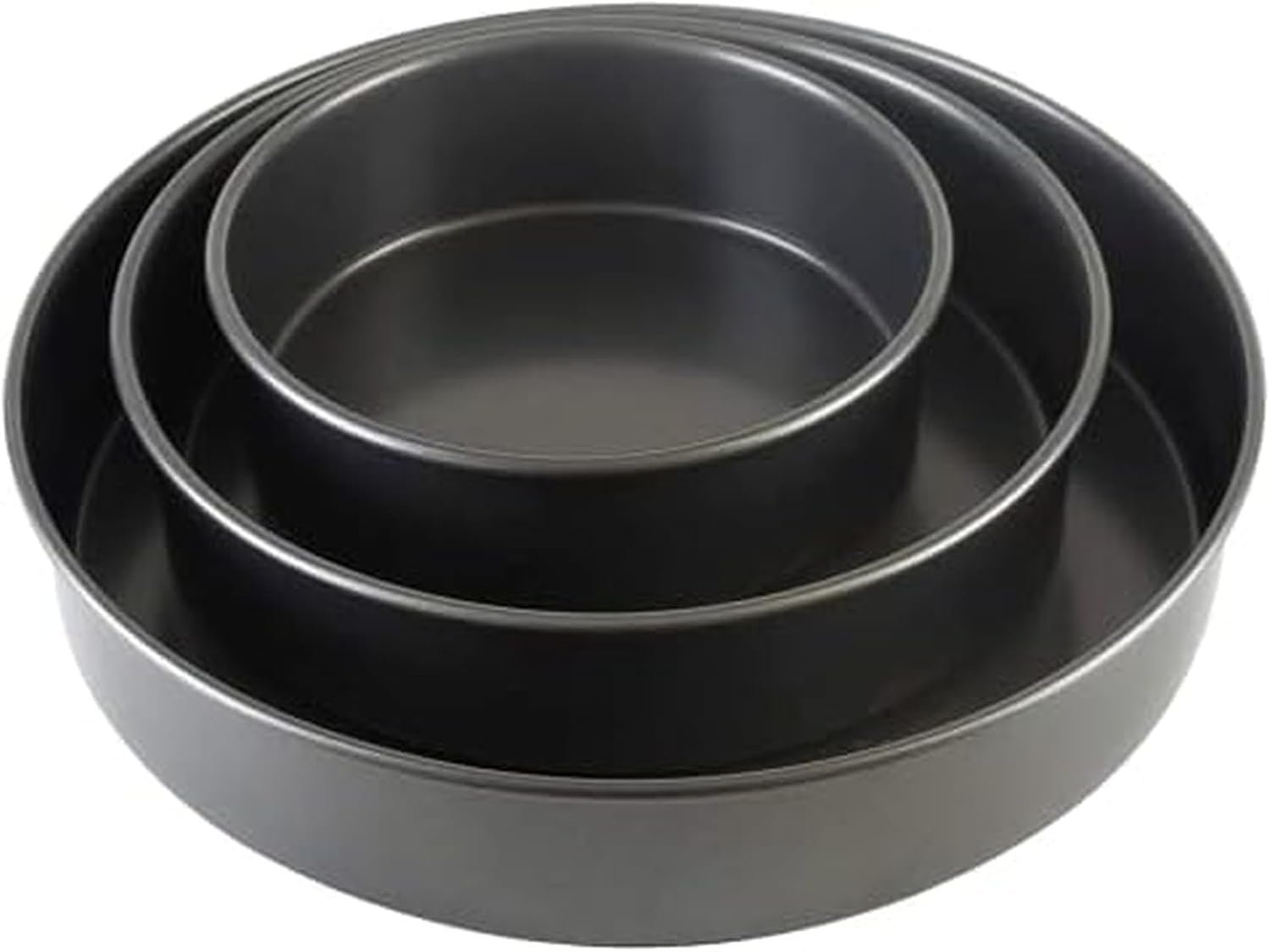 This professional 3-piece round cake baking pan set includes 6-inch, 8-inch, and 10-inch sizes to meet various cake baking needs. Made of heavy-duty carbon steel, it boasts excellent non-stick properties, ensuring even baking and easy removal of cakes. Whether making birthday cakes or multi-tiered cakes, this baking pan helps you achieve your goals with ease. This product is a standard household kitchen appliance and does not contain any patented designs.